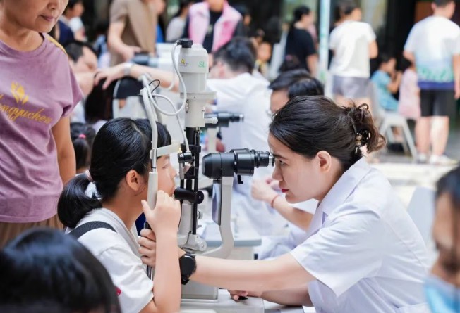 寓教于乐 科普与关爱落地 活动现场,近视防控专家杨正菲博士用生动案例解读 “儿童屈光发育密码”,让家长们掌握了“20-20-20”护眼法则、“每天户外2小时”等实用护眼技巧。 而爱尔眼科原创儿童护眼话剧《瞳梦国奇旅》则以童趣横生的方式传递了护眼理念,“大眼仔””与“爱宝”的冒险故事让孩子们在欢笑中记住了“不揉眼睛、少看屏幕”的护眼要点。 活动尾声,东莞爱尔眼科医院专业团队为到场儿童进行了细致的眼健康检查,并建立专属视力健康档案,将“一年一眼检”的护眼理念落到实处。 “守护孩子的眼睛,就是守护城市的明天。”随着主会场活动圆满收官,这场以爱为眸的公益之旅已在东莞全面铺开,旨在让每一双清澈的眼睛都能尽情探索世界之美,见证更加“睛”彩的未来。