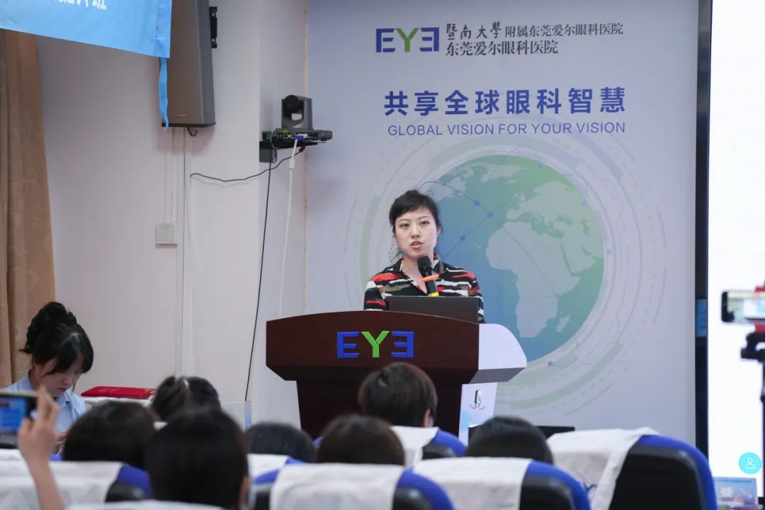 郑俊经理分享了《抓好“五率”,医患无虑》课题,详细剖析了角膜(干眼)患者服务工作的核心流程及高效开展要点,为医护人员在实际工作中提升服务效率提供了理论支持;同时明确了专科护士与患者助理的角色定位及工作职责,增强了医护团队协作的清晰度和有序性。