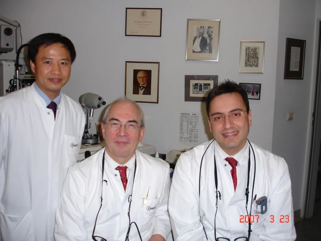 右图中,左一为刘斐,中间为Forster教授,右一为Bechrakis NE教授
